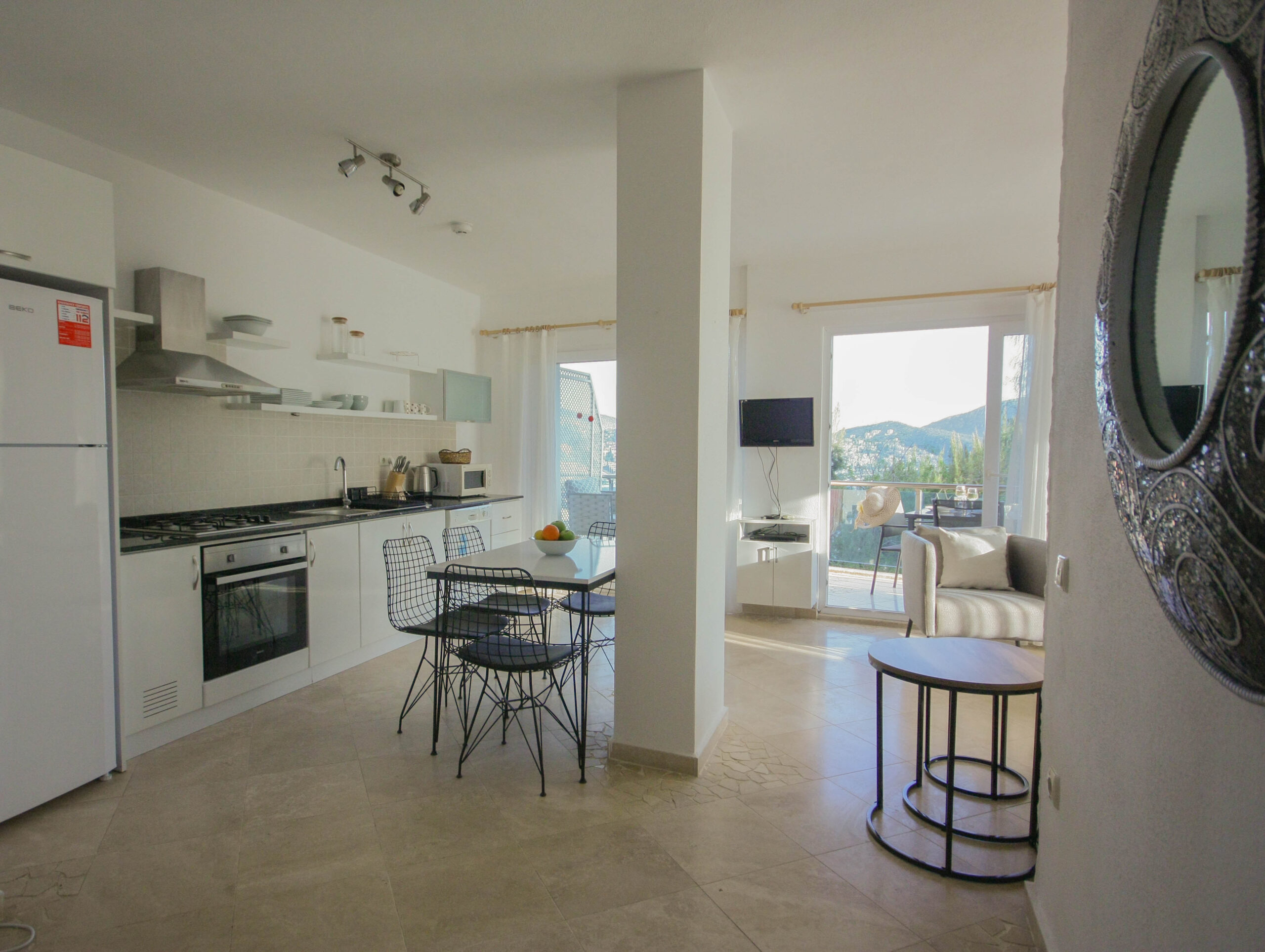 The apartment enjoys one of Kalkan’s most convenient locations, situated in a peaceful yet completely central neighbourhood within easy walking distance of all the town’s main attractions. This prime position allows residents to stroll to Kalkan’s famous harbour, boutique shops, and excellent restaurants within minutes, while returning to a tranquil retreat with beautiful sea views. The property’s elevation ensures lovely views across the Mediterranean, creating a constant connection with the coastal landscape. For those searching for a property for sale that offers both the buzz of Kalkan life and a comfortable home base, this location is truly ideal.