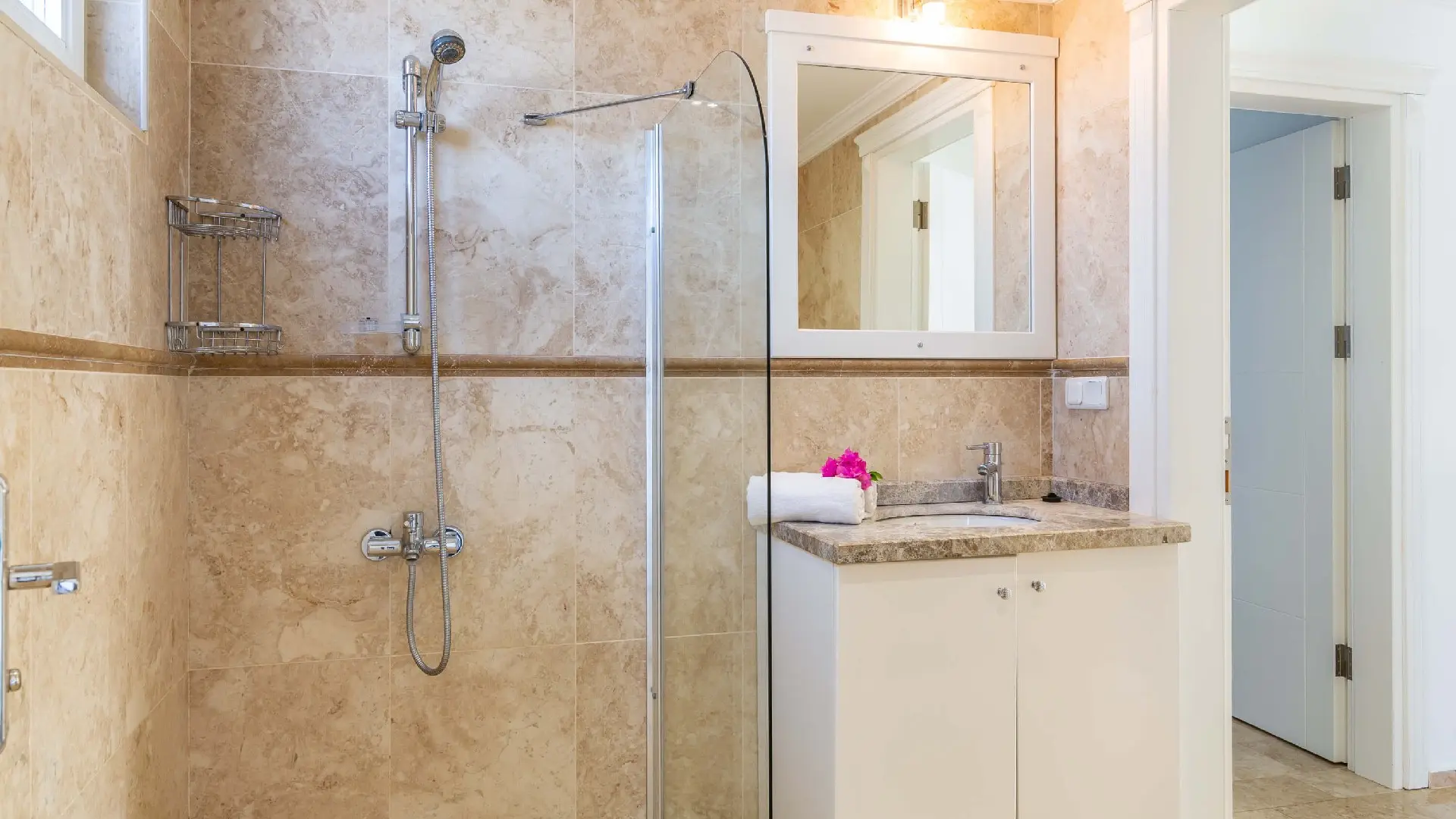 The interior spaces are both elegant and practical, designed for comfortable living and entertaining. The open-plan layout creates a wonderful sense of space, with a modern kitchen, dining area, and comfortable lounge that opens directly to the terrace. The bedrooms are generously proportioned with quality fittings and ample storage, while the bathrooms feature contemporary finishes. The interior design showcases elegant touches throughout, with a sophisticated colour palette and premium materials that create a calm, luxurious atmosphere perfect for a holiday home.