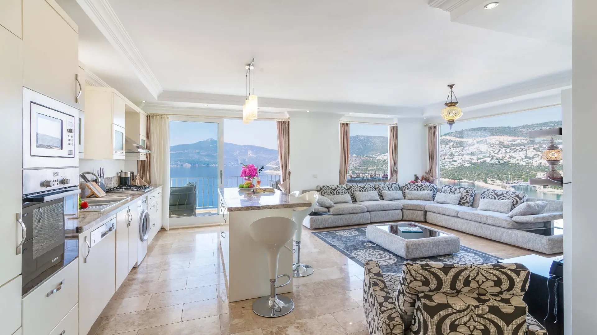 The apartment enjoys a privileged position in one of Kalkan’s most sought-after residential areas, offering both tranquillity and convenient access to the town’s amenities. The elevated location ensures complete privacy while providing sweeping views across the Mediterranean Sea and the picturesque town below. Just a short drive from Kalkan’s famous harbour and boutique shops, this property for sale perfectly balances seclusion with accessibility, making it an ideal choice for those seeking a holiday home for sale that offers the best of both worlds.