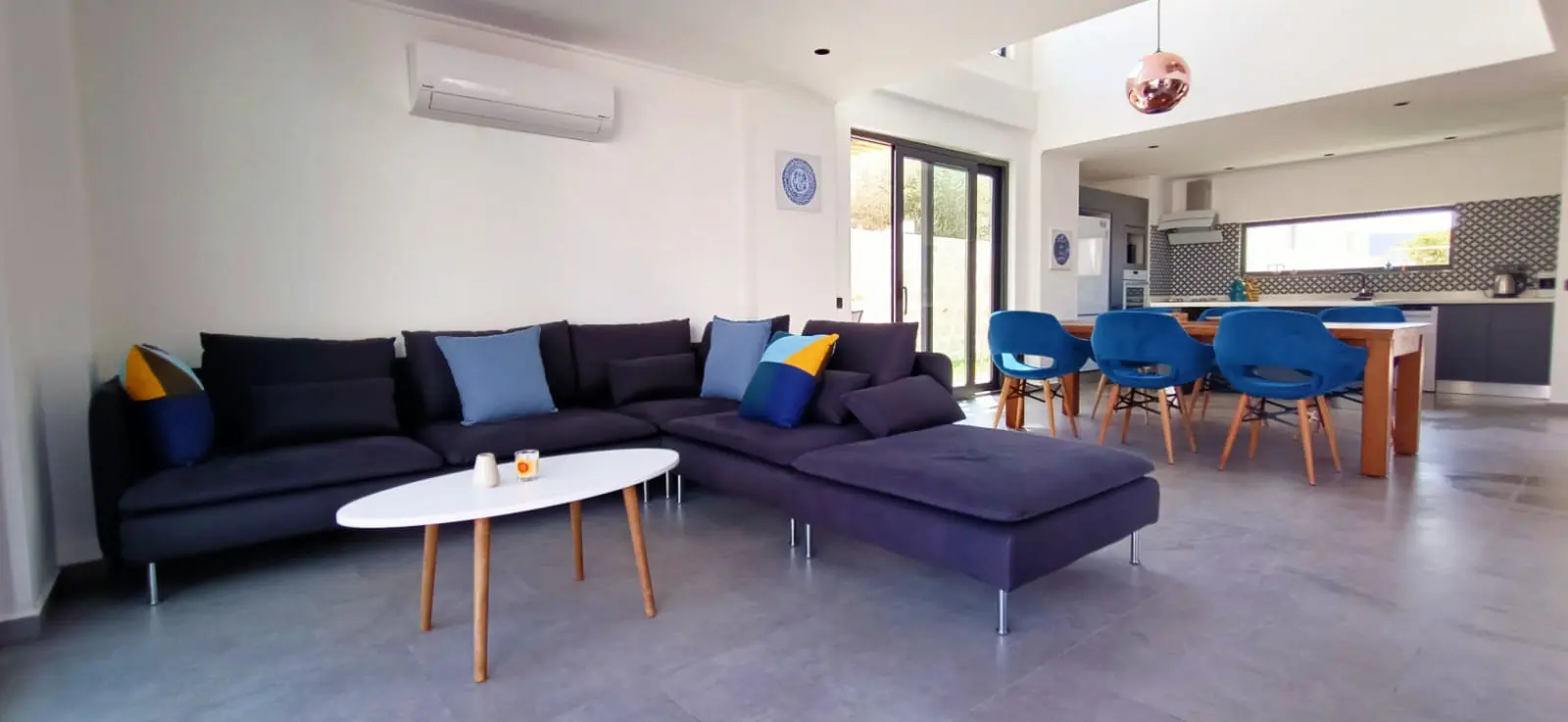 The interior is both welcoming and practical. The main living area is open-plan, incorporating a comfortable lounge, a dining space, and a functional, fitted kitchen. Large doors open from the living room onto the terrace, flooding the space with light and providing direct access to the pool. The three bedrooms are generously sized, with the master bedroom typically featuring an en-suite bathroom for added convenience. The decor is bright and airy, creating a relaxed and comfortable atmosphere throughout.