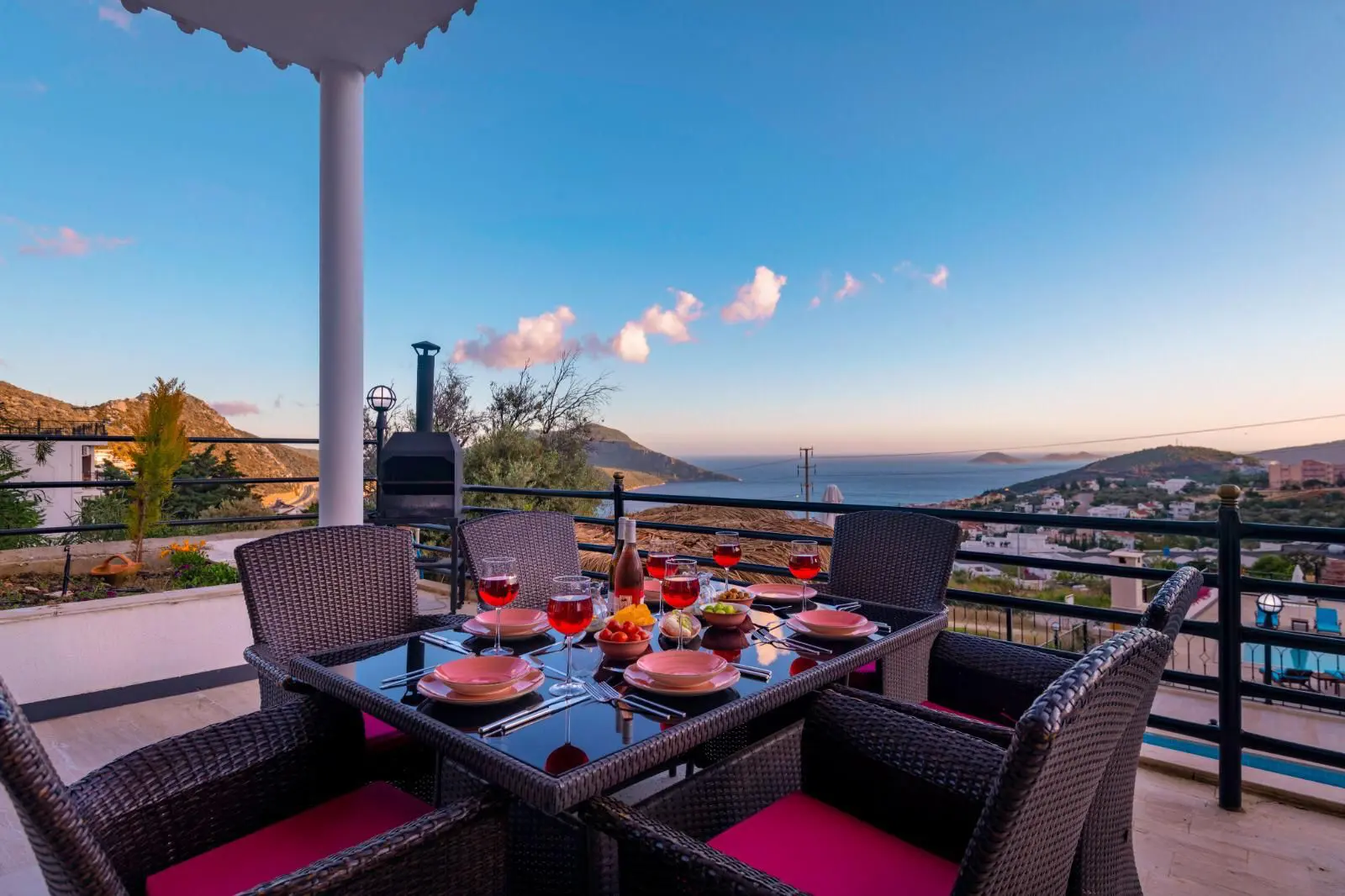 The outdoor space is expertly crafted for relaxation and enjoyment of the Kalkan climate.