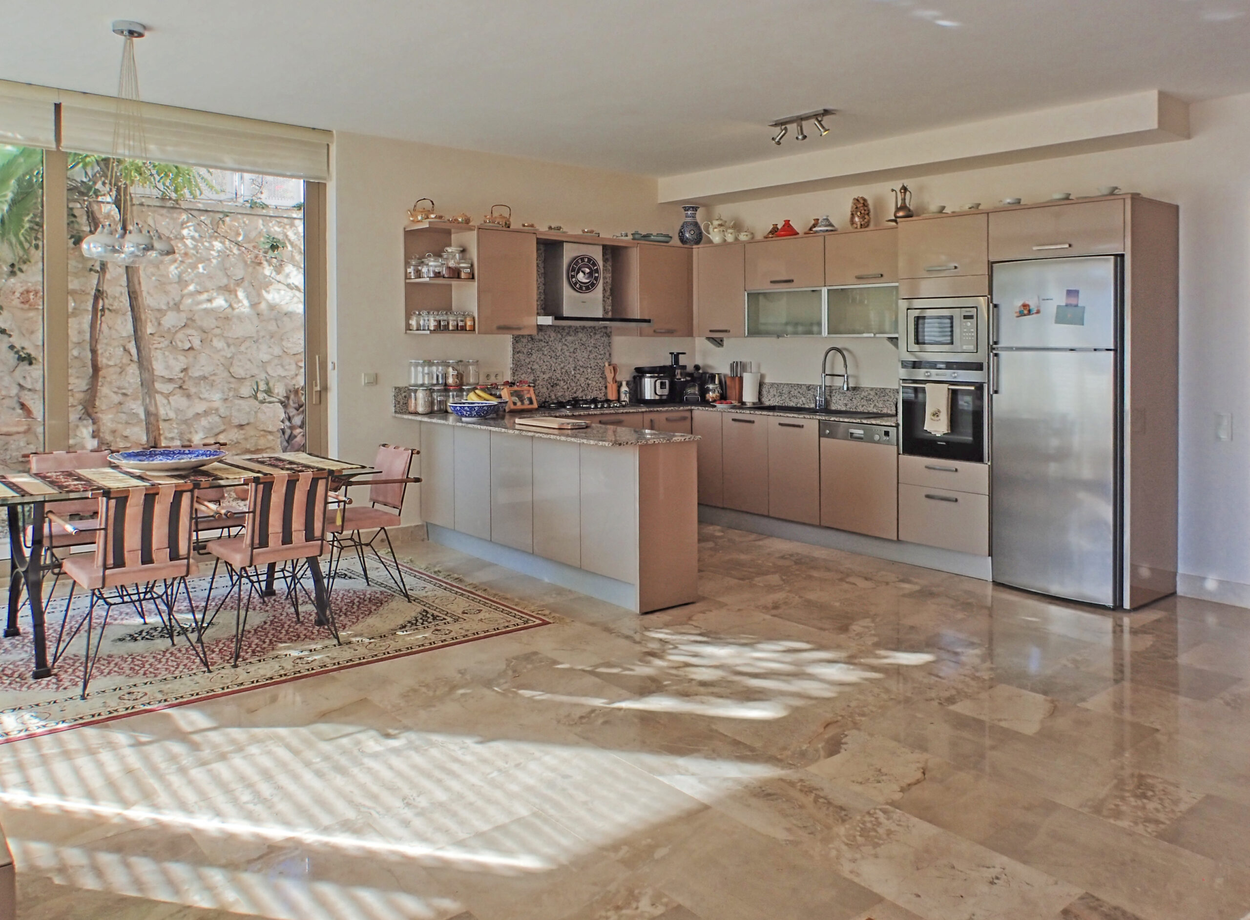 Step inside to discover a thoughtfully configured interior that excels in both style and functionality. The open-plan living area creates a wonderful sense of space, featuring a modern kitchen with premium appliances, a dining area, and a comfortable lounge that opens completely to the pool terrace. The four bedrooms are generously proportioned, with the master suite enjoying direct terrace access and an en-suite bathroom. The interior design features elegant touches throughout, with a neutral colour palette and quality finishes that create a calm, sophisticated atmosphere perfect for a holiday home.