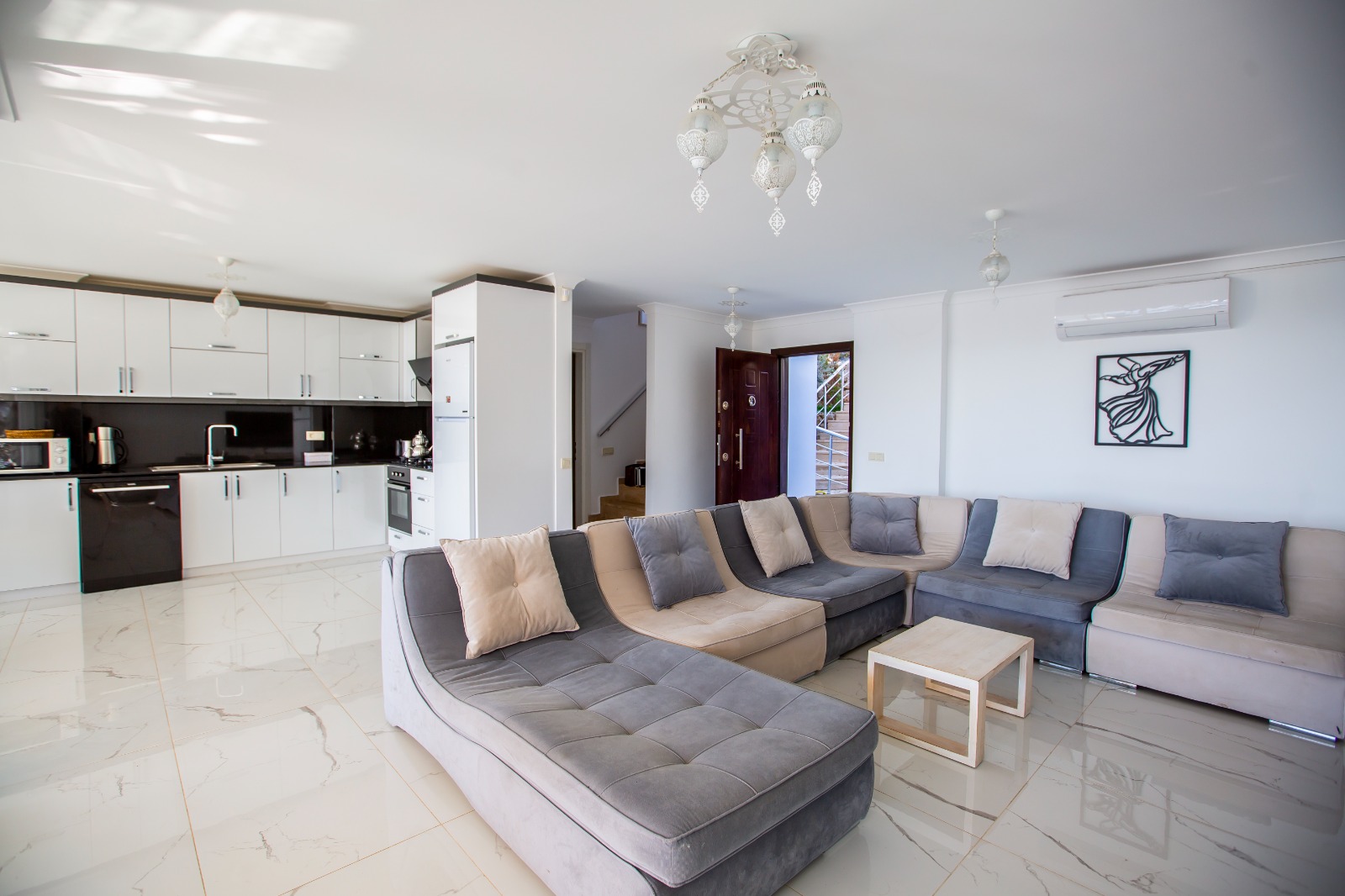 This architecturally striking villa redefines modern living in Kalkan. Spread over three floors, the property intelligently utilizes space and light, featuring three generous double bedrooms, including a spectacular master suite with a private balcony. The open-plan living area on the middle floor seamlessly connects to the pool terrace, creating a perfect flow for indoor-outdoor living. With its high-end finishes, private pool, and captivating views, this villa is a turnkey opportunity for a sophisticated holiday home, a lucrative rental investment, or a permanent residence.