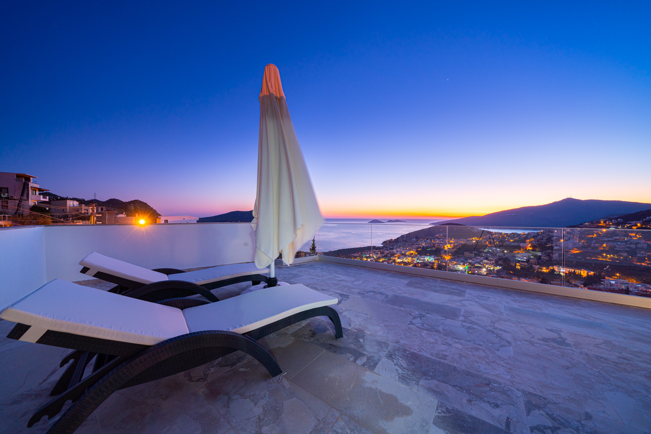 Uninterrupted Bay Views: Enjoy a sweeping, 180-degree panoramic view that encompasses the entire expanse of Kalkan Bay, the town, and the surrounding mountains.