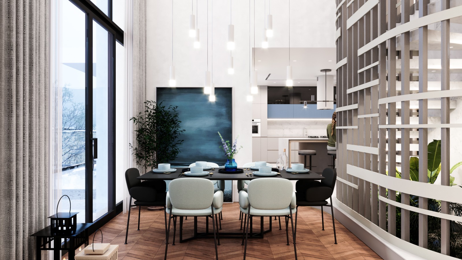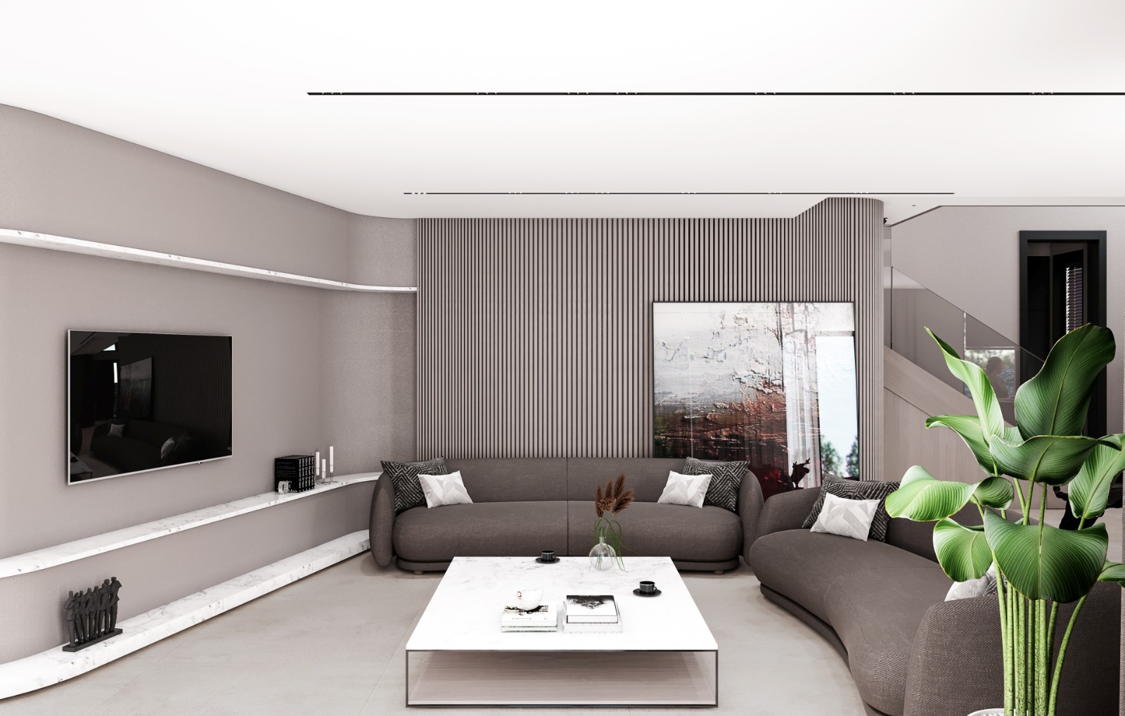 Step inside to discover a thoughtfully curated interior that exemplifies modern luxury. The open-plan living area features a state-of-the-art kitchen, formal dining space, and multiple lounge areas that flow effortlessly to the terrace. The bedroom suites are generously proportioned with high-quality en-suite facilities and private terraces. The interior design showcases a sophisticated neutral palette, premium finishes, and elegant touches throughout, creating an atmosphere of refined comfort perfect for a luxury holiday home.