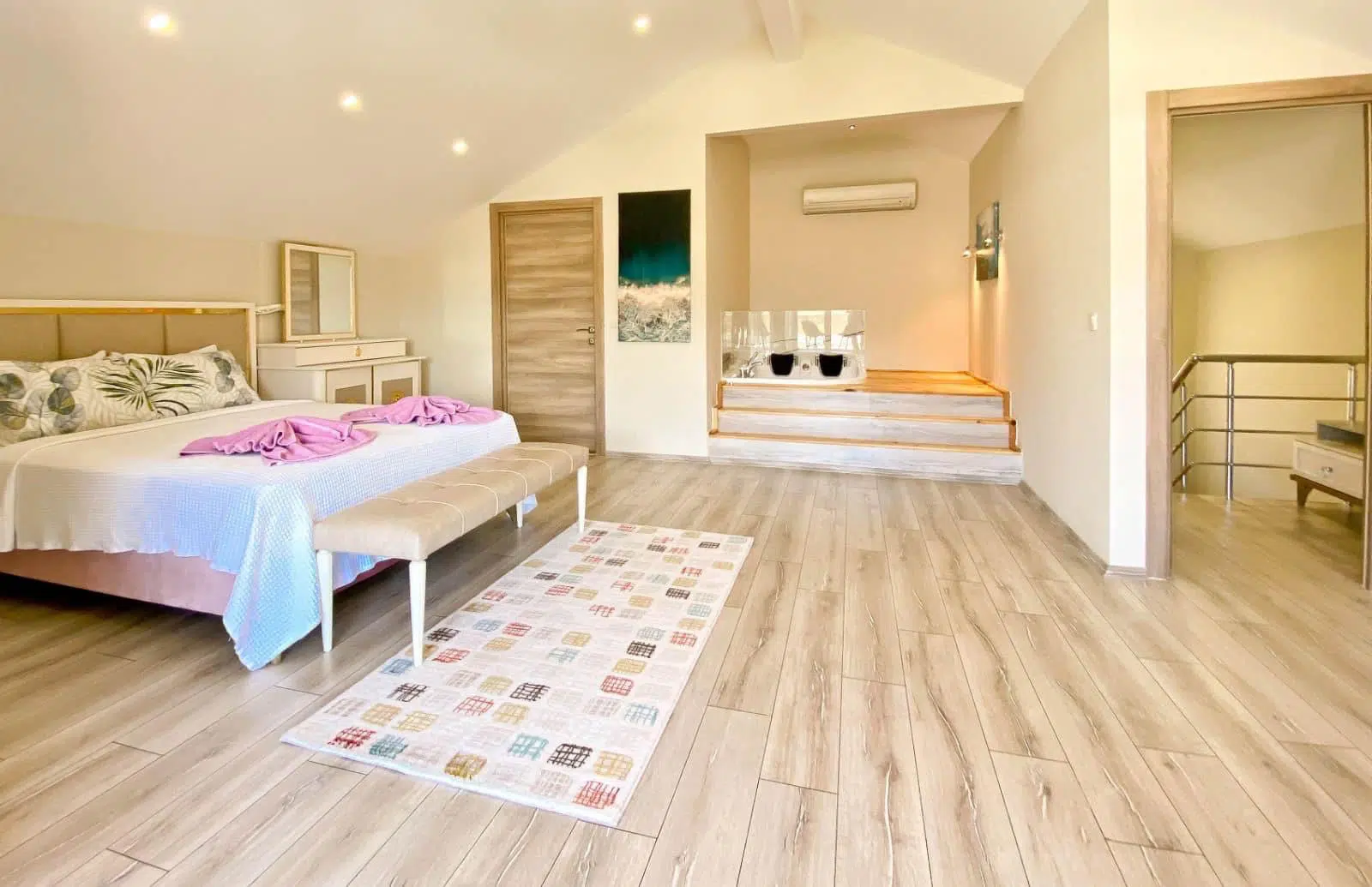 Отличная возможность для инвестиций! Две виллы на большом участке площадью 1100 м2, одна из которых с 2 спальнями, а другая с 3 спальнями, расположены в красивой деревне Сарибелен, в 15 минутах езды от центра города.